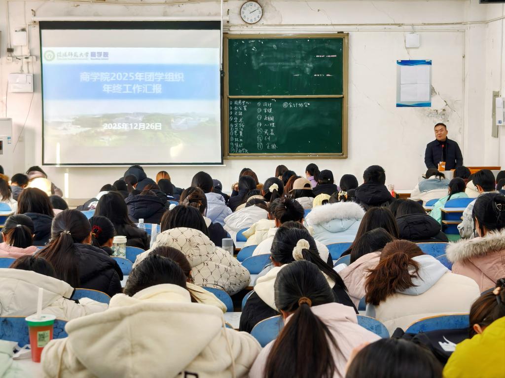 为总结2025年度团学工作成果、明晰后续工作方向,12月26日,商学院2025年团学组织年终汇报于经管楼103教室召开。团学组织各部门部长、社团社长进行述职,学院团委老师盛海、学生兼职团委副书记袁泉、学生会主席团成员出席会议,全体干事观摩学习。